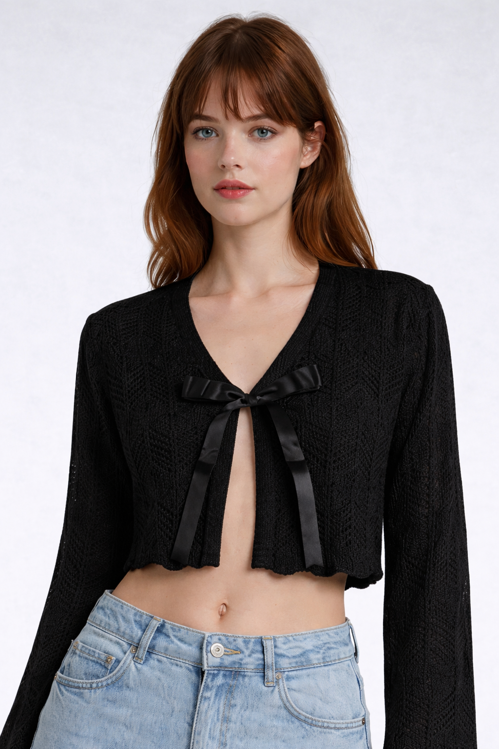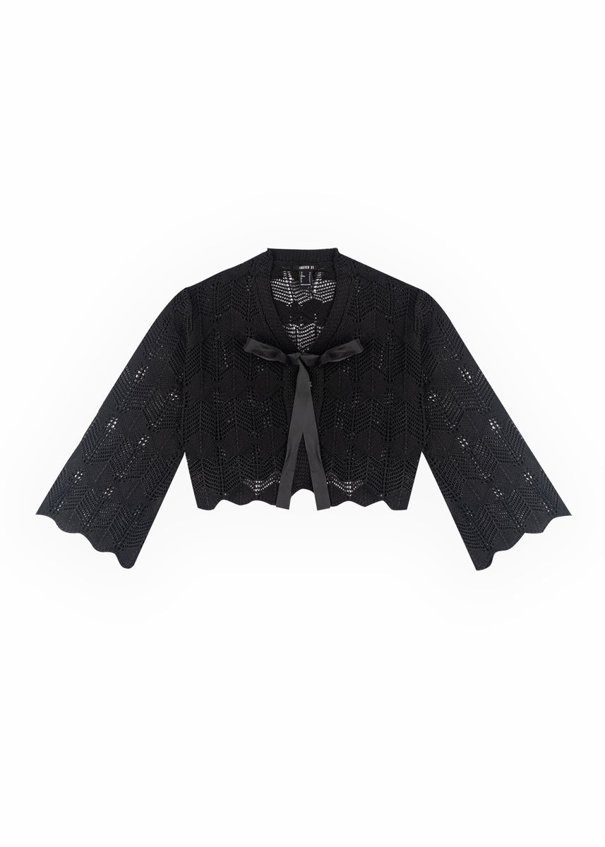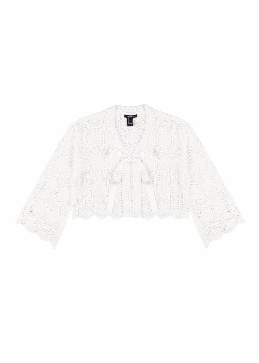 Open-Front Pointelle Bow Cardigan
