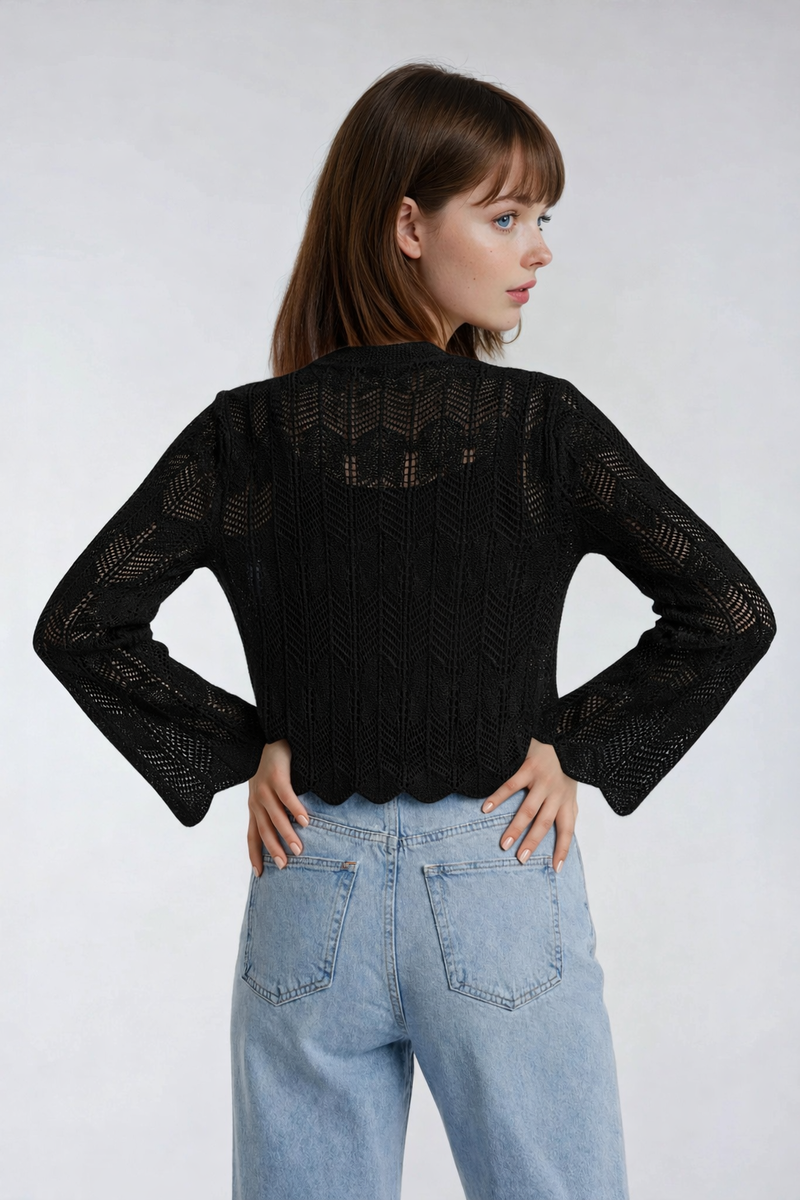 • Lightweight open-front sweater with delicate pointelle knit detailing